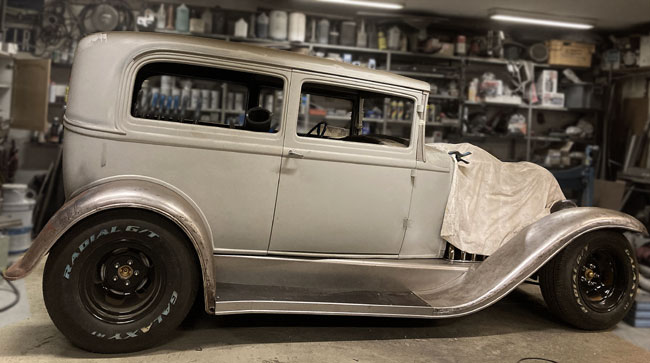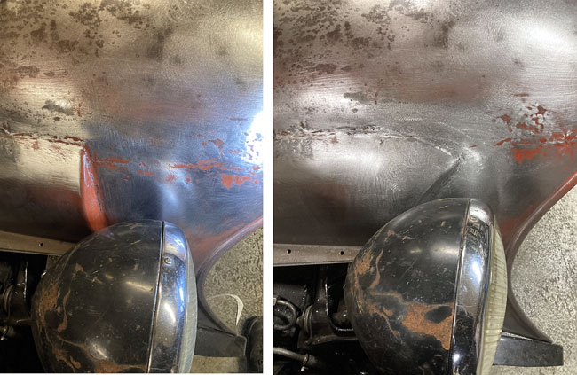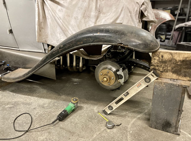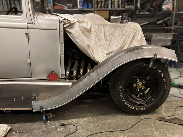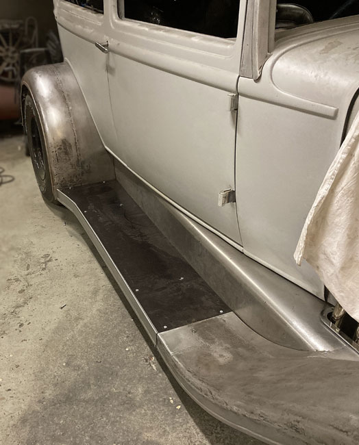 After the driver's side running board was mounted to the body and to the rear fender, finishing work on the fenders could be continued.