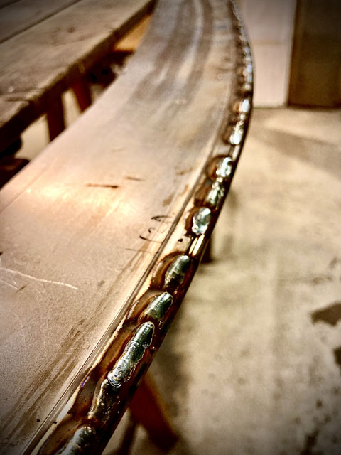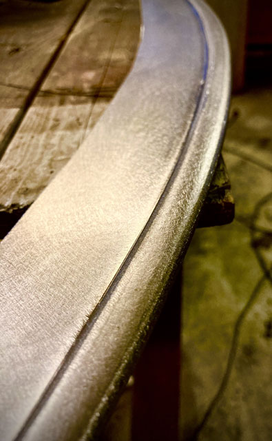 This is the second fender edge. The first attempt was a failure, the swoop didn't look right. A deep breath and another try. This time it looks better. |