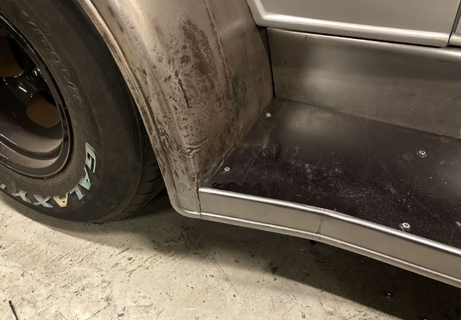 Some cutting, welding and grinding later the rust is gone and the fender fits much better to the running board molding. |