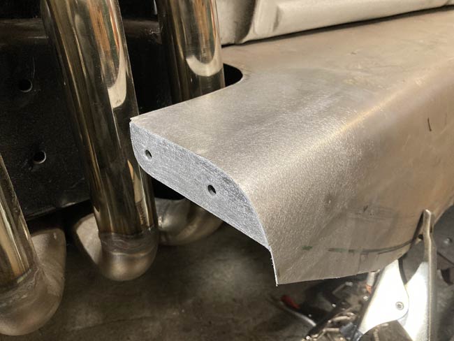 This is the second fender edge. The first attempt was a failure, the swoop didn't look right. A deep breath and another try. This time it looks better. |
