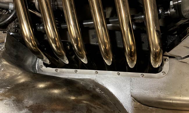 A couple of parts to frame the hole for the exhaust primaries were drawn in CAD and sent for laser cutting from stainless steel.