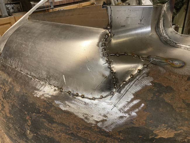 The weld ground and the resulting fender edge. |