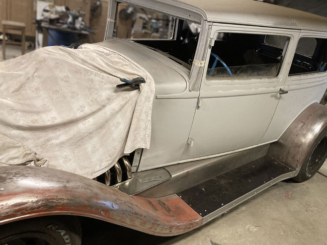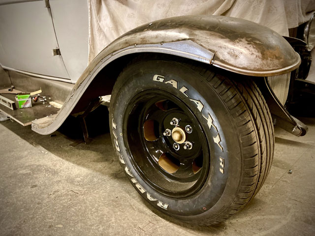 After the driver's side running board was mounted to the body and to the rear fender, finishing work on the fenders could be continued.