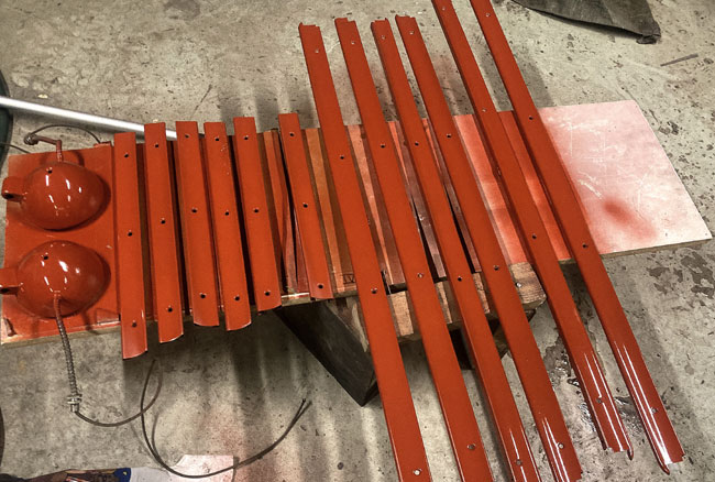 The parts, along with the tail light housings were then painted with oxide red primer. |