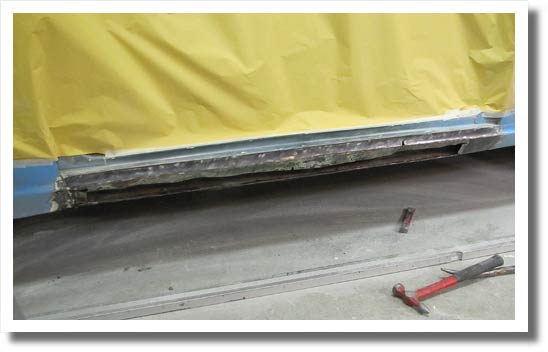 The old repair is cut away in this photo, and a new patch panel can be fabricated. |