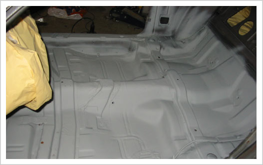 The rust and dents mostly under control now, the rear bumper was removed. |