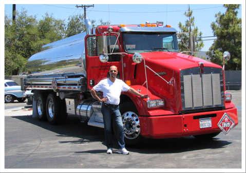 As we continued on our way to Los Angeles, we stoped for gas and a Mc Flurry, and "Leif Dundee from Finland" found a colleague, who let us take a pic of Leif in front of his tanker. |
